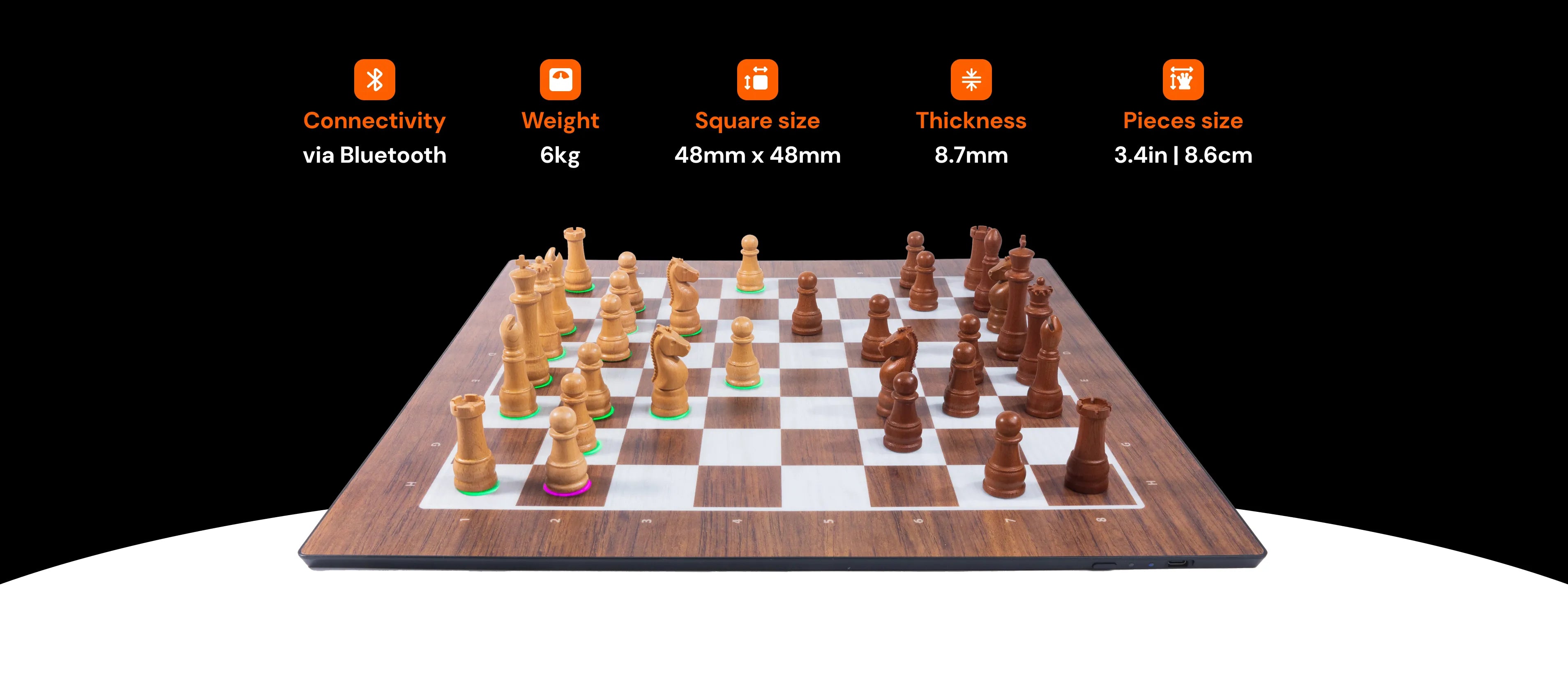 GoChess can connect online to gaming platforms so you can play online with people around the world. The board connects to the GoChess app, where the player can log in with their Lichess or Chess.com account. All the features of the board are controlled and accessible through the GoChess App.