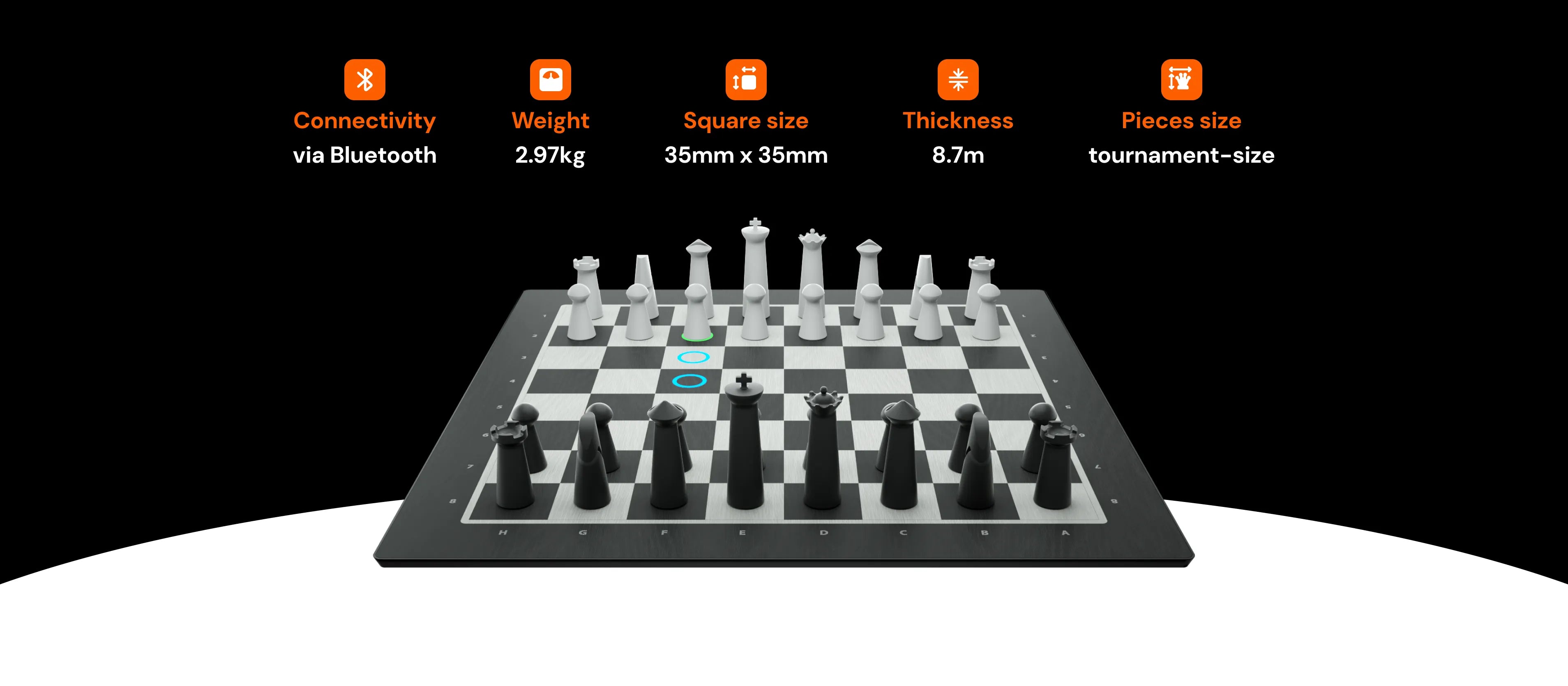 GoChess can connect online to gaming platforms so you can play online with people around the world. The board connects to the GoChess app, where the player can log in with their Lichess or Chess.com account. All the features of the board are controlled and accessible through the GoChess App.