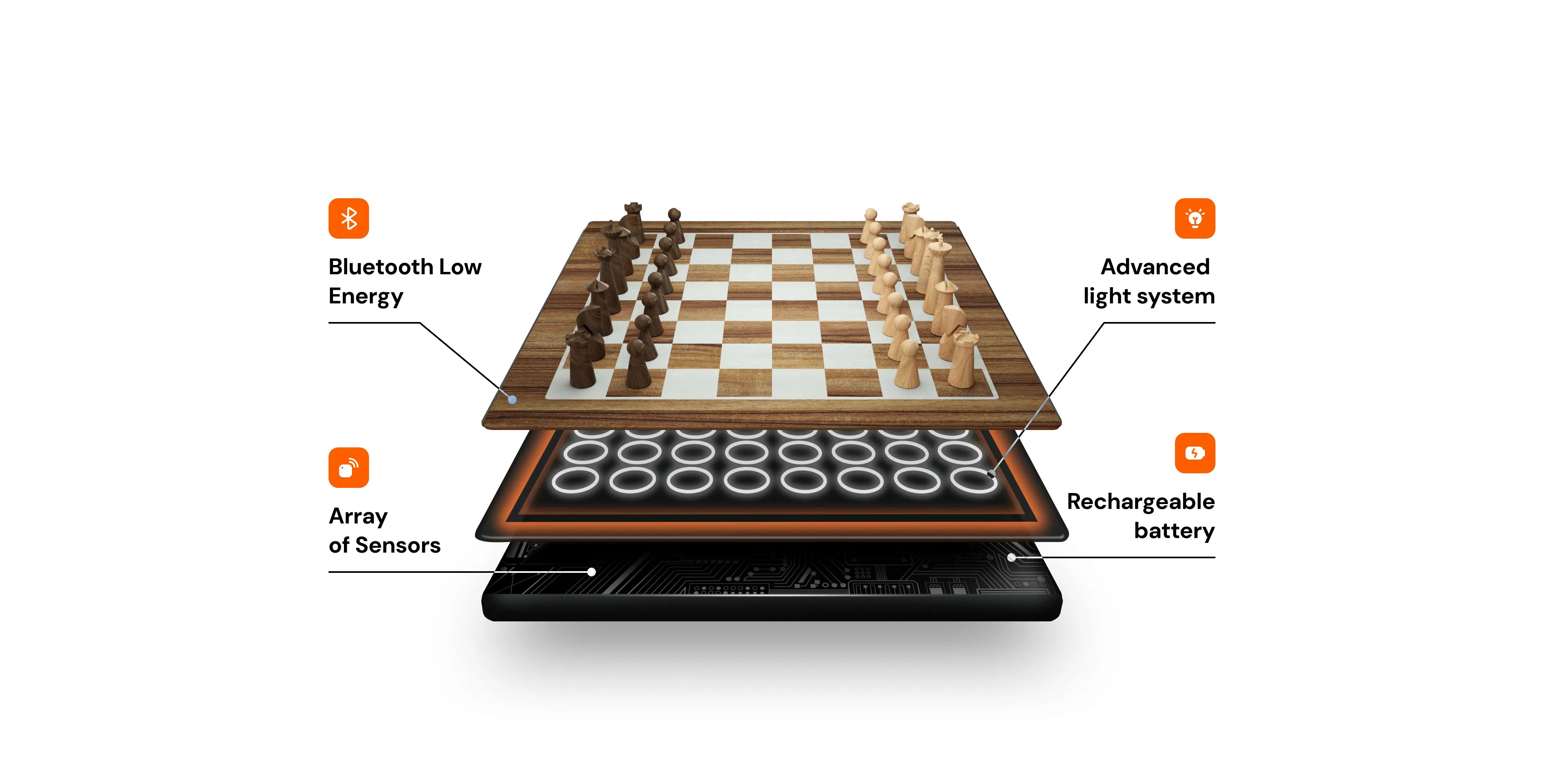App-enabled chessboard empowered with AI and a lights system, to level up your chess.