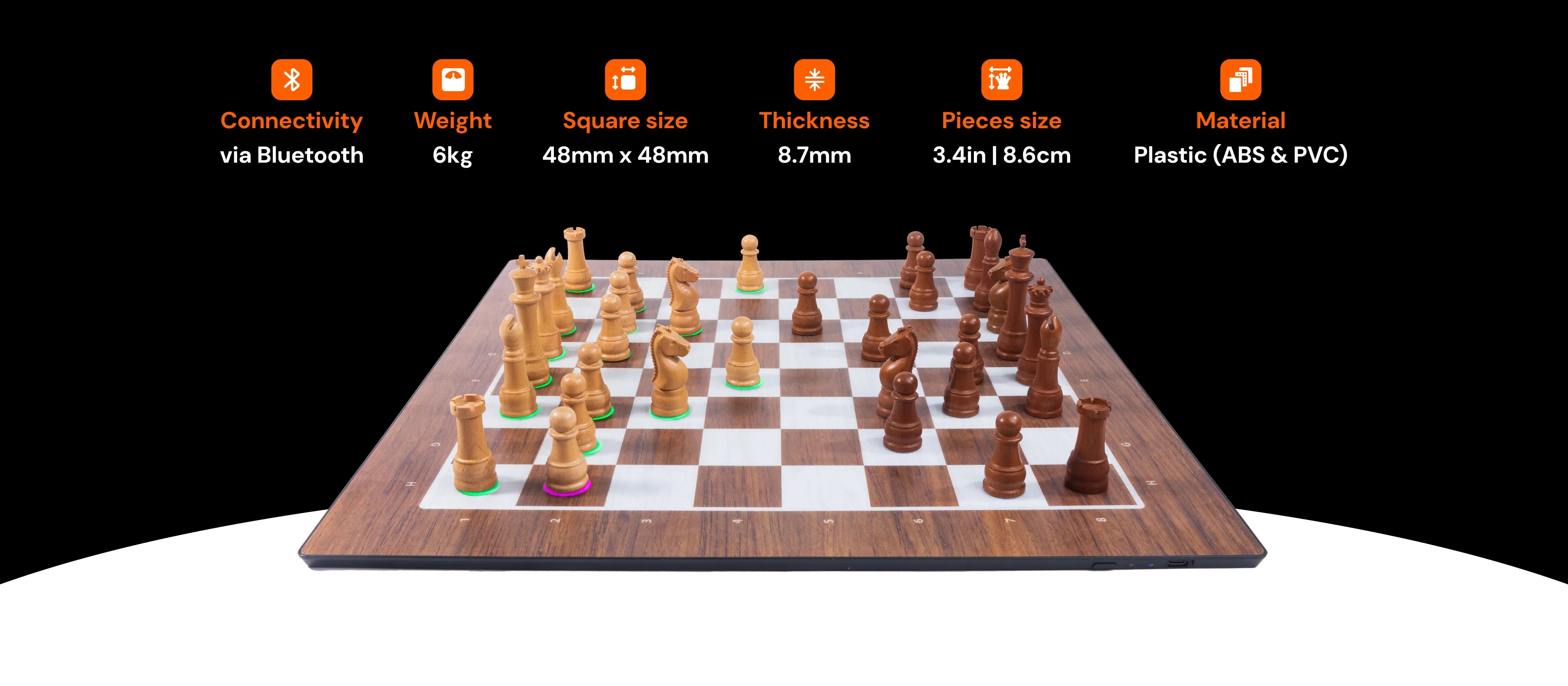 GoChess can connect online to gaming platforms so you can play online with people around the world. The board connects to the GoChess app, where the player can log in with their Lichess or Chess.com account. All the features of the board are controlled and accessible through the GoChess App.