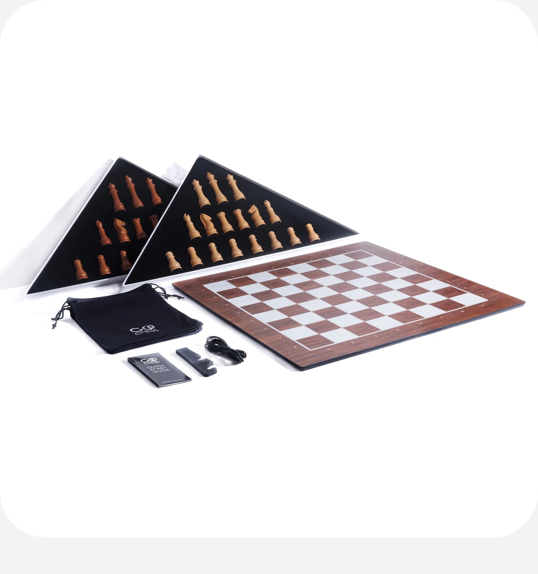 GoChess has a mobile app (Android and iPhone) which connects online to gaming platforms (the most popular platforms are Lichess and Chess.com) so you can play online with people around the world or with AI.
